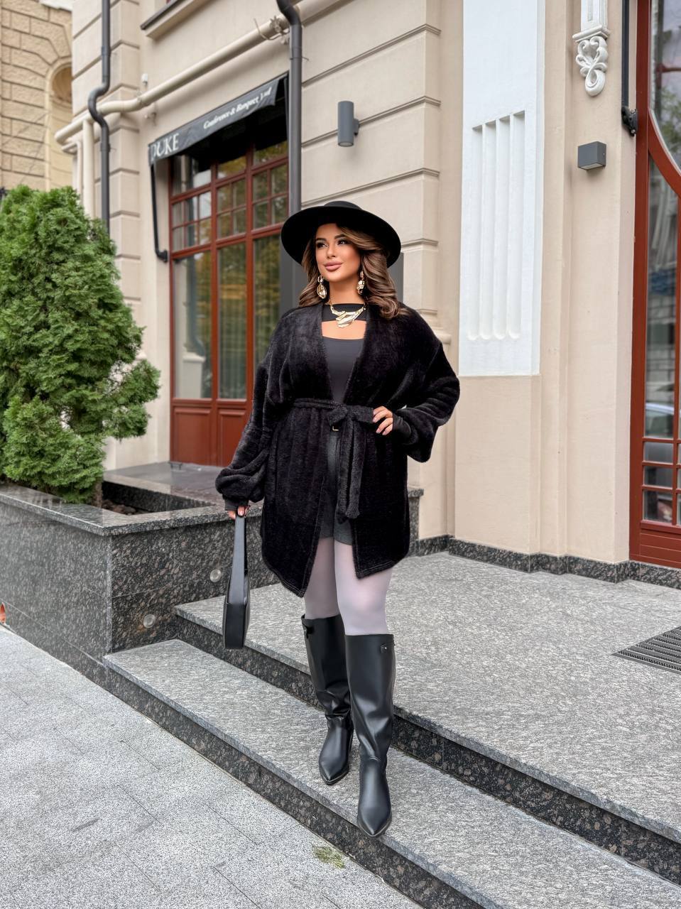 Материал: вязаный кашемир (шерсть, мохер и акрил) — мягкий, приятный к телу, идеальный на осень ???? широкие рукава — можно надевать поверх любой одежды — не будет дискомфорта. Пояс в комплекте