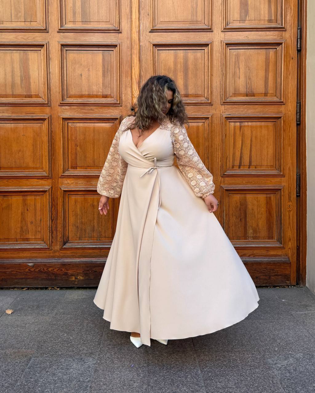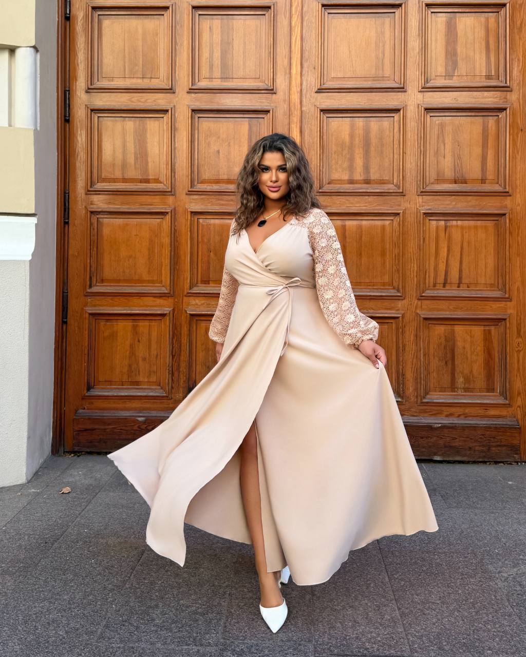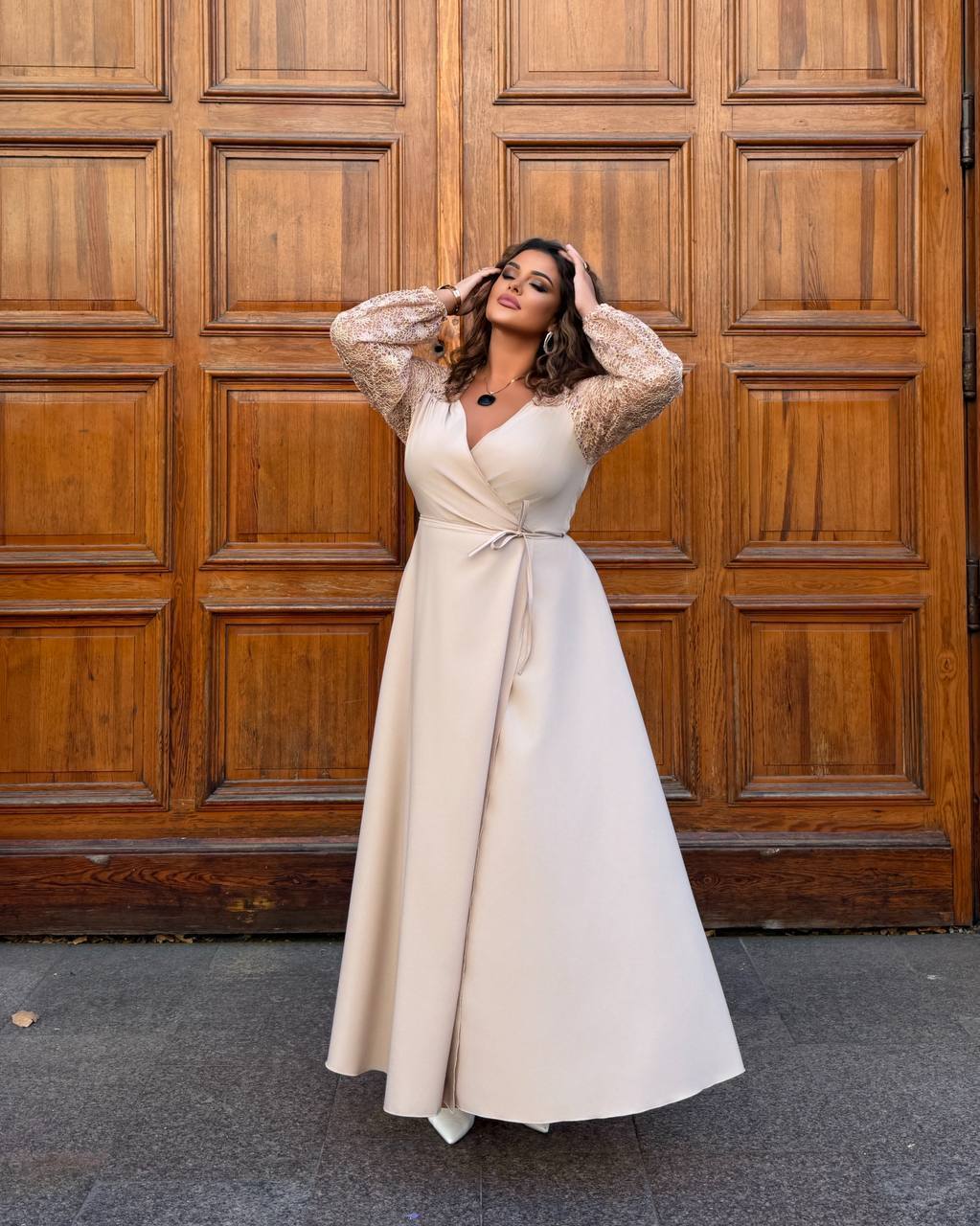 Довге святкове плаття 05568,14 світлий беж колір