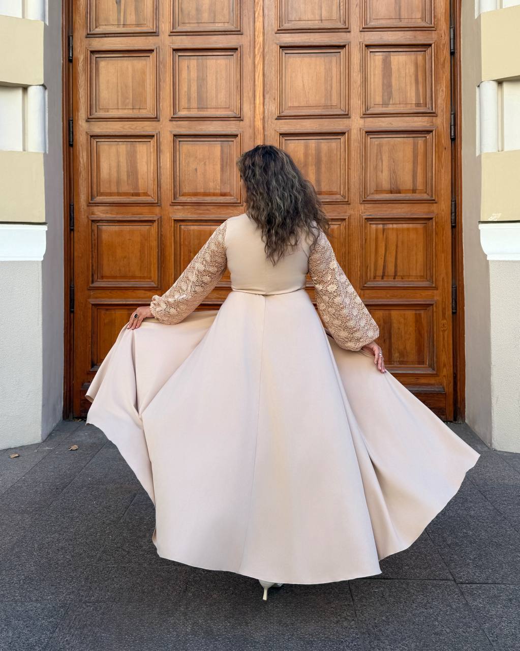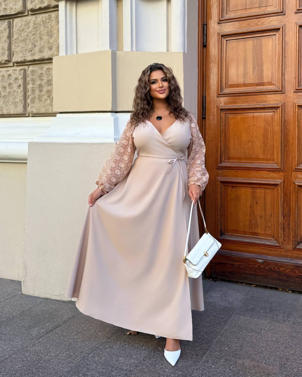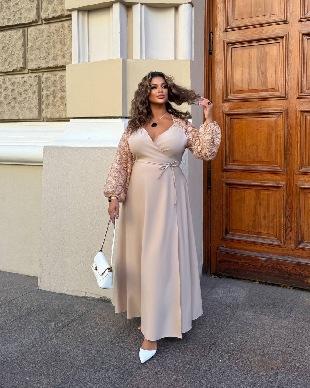 Довге святкове плаття 05568,14 світлий беж колір